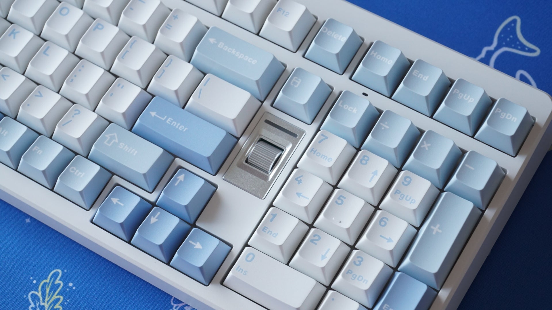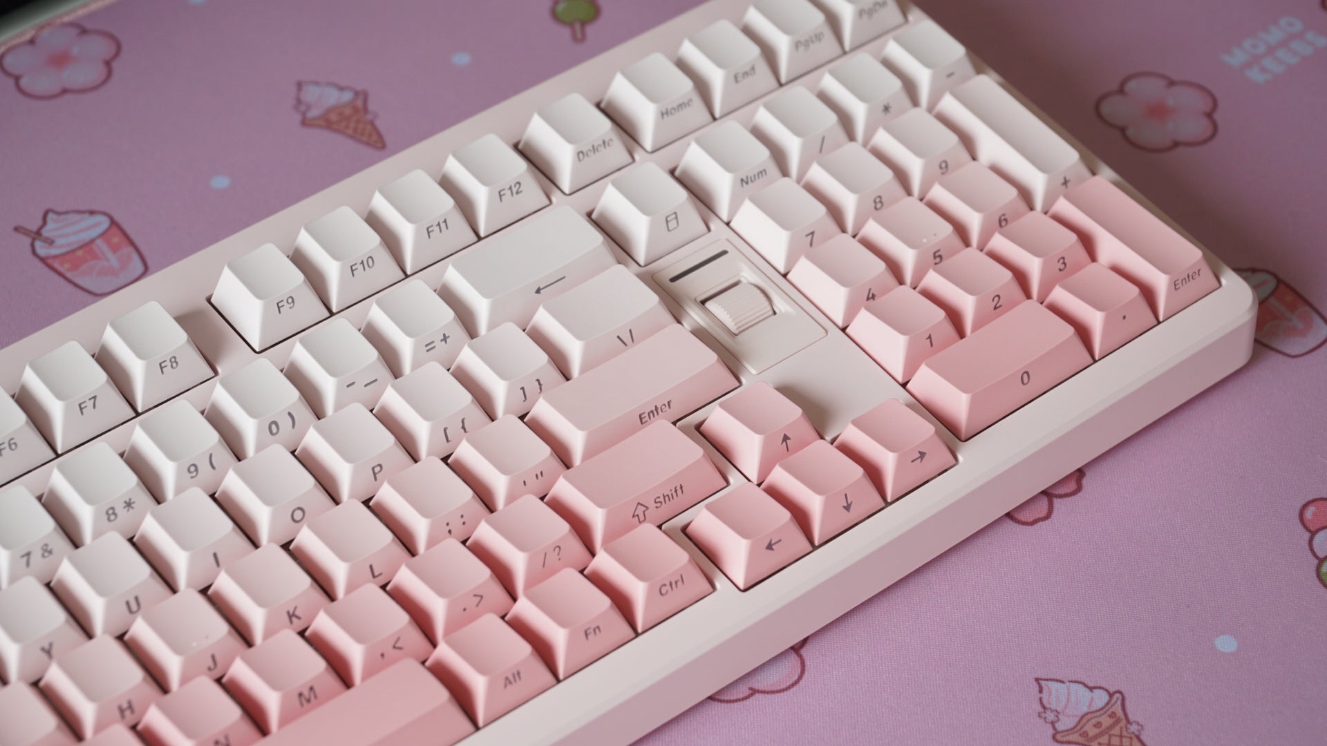 a new, creamy full sized keyboard! the ergonomic angle makes it really nice to type on.