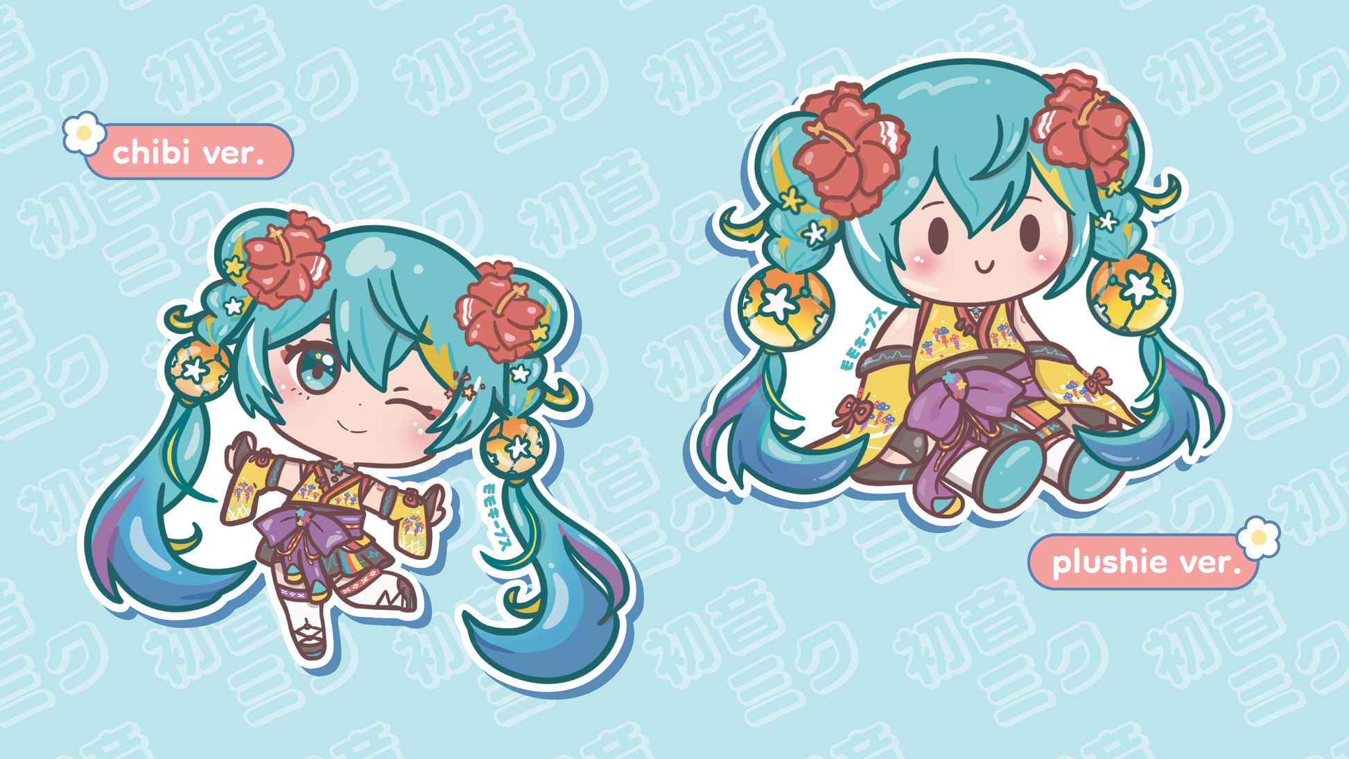 available in 2 designs (plushie and chibi) and in 2 sizes.