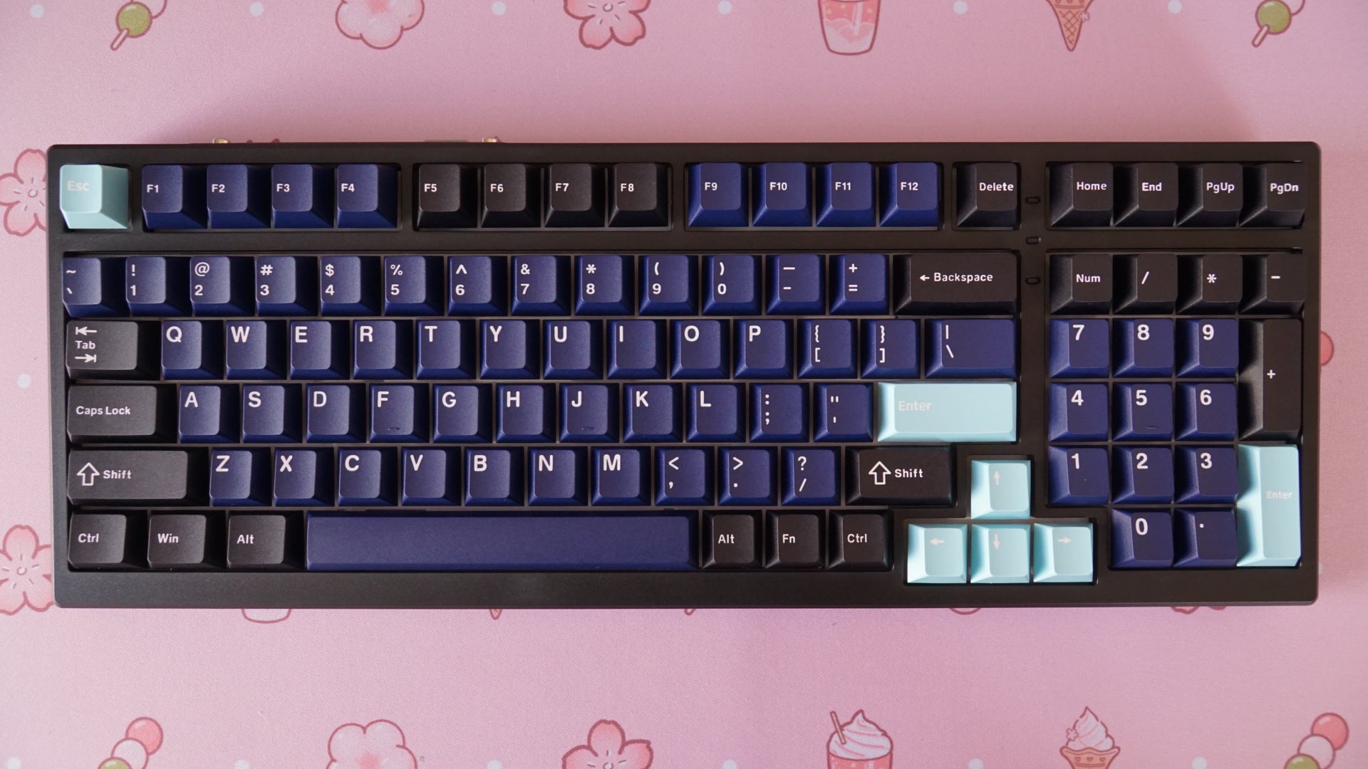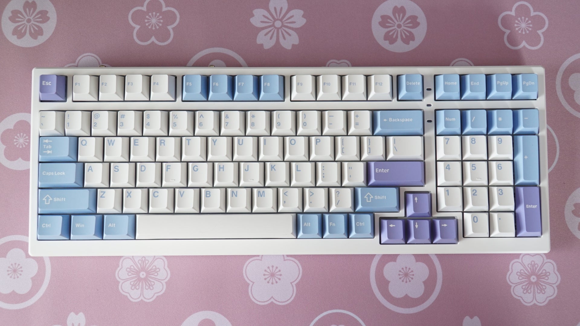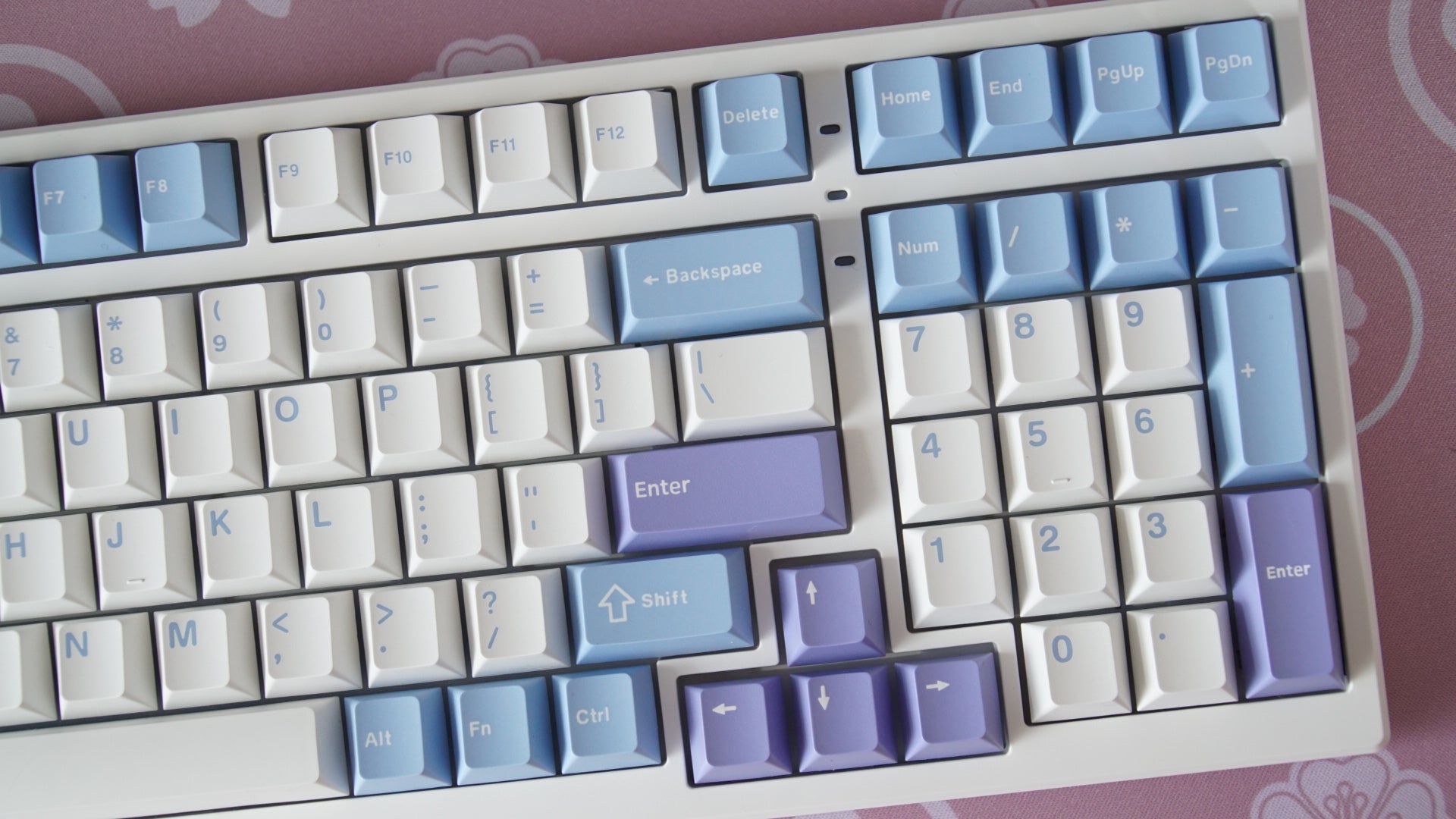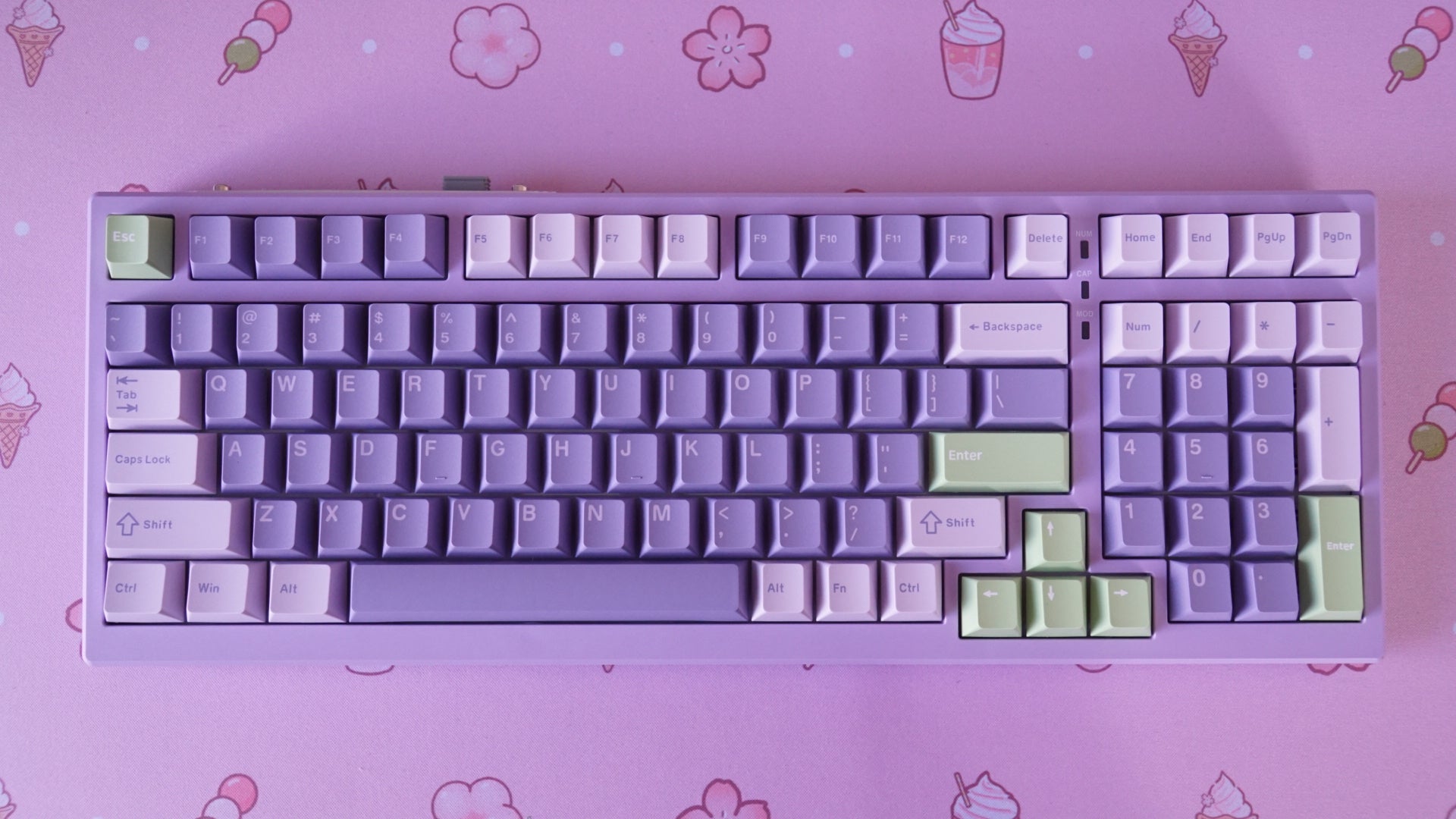 • assembled with dark plum linear switches